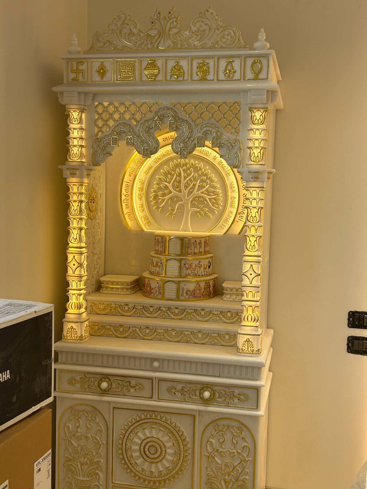 Transform your mandir into a divine haven where intricate artistry and a tranquil ambiance converge to elevate your spiritual practice into moments of profound reverence and inner peace.