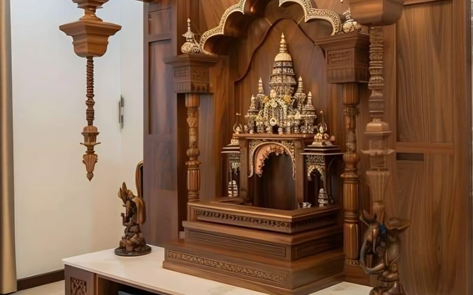 "Expert craftsmanship and exquisite finishes breathe new life into your mandir, turning it into a divine sanctuary of enduring elegance."